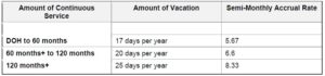 At the end of each calendar year, unused accrued vacation hours will be carried over. In the event an Employee has unused accrued vacation time equivalent to one- and one-half times (150%) the annual amount they are entitled to, vacation days shall be capped and cease to accrue until such time that the unused and accrued vacation days fall below such amount. For example, if an employee is allowed 10 days of vacation (80 hours), they will stop accruing once their unused balance reaches 15 days (120 hours). Once accruals restart, accruals will not be retroactive.