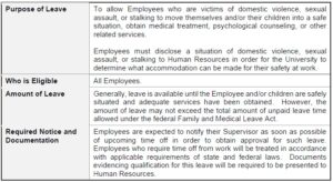 ♦ DOMESTIC VIOLENCE, SEXUAL ASSAULT, AND STALKING LEAVE – UNPAID