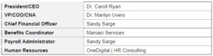As of the date of the printing of this Handbook, the following persons hold the corresponding positions identified below. Positions and Employees may change at any time, as needed.