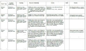 For promotion from Associate Professor to Full Professor a faculty member should be considered ‘Good-Excellent’ (4-5 out of 5 points on a five-point scale) in both research and teaching. The applicant should be at least ‘Average-Good’ (at least 3 points or greater out of 5 points on a five-point scale) in service. For those who have administrative roles, service category can be substituted for research/scholarship.