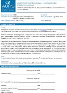 Remote Proctorio Testing Policy: Proctorio System Integration in Canvas